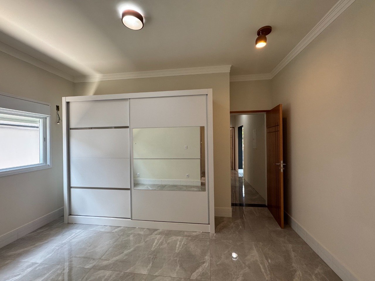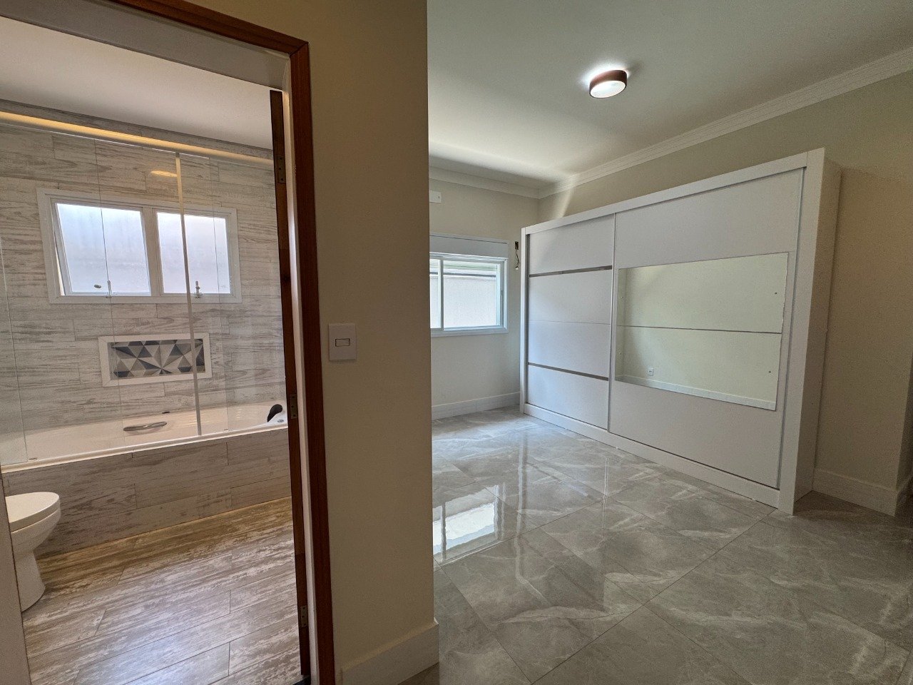 O imóvel oferece três dormitórios, sendo um suíte com banheira de hidromassagem .