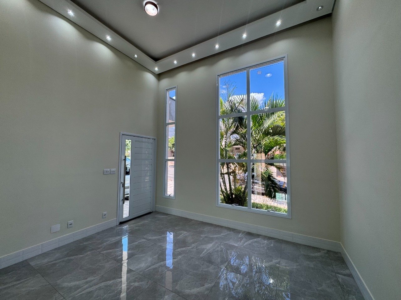 A garagem acomoda até quatro veículos, sendo duas vagas cobertas e duas descobertas.