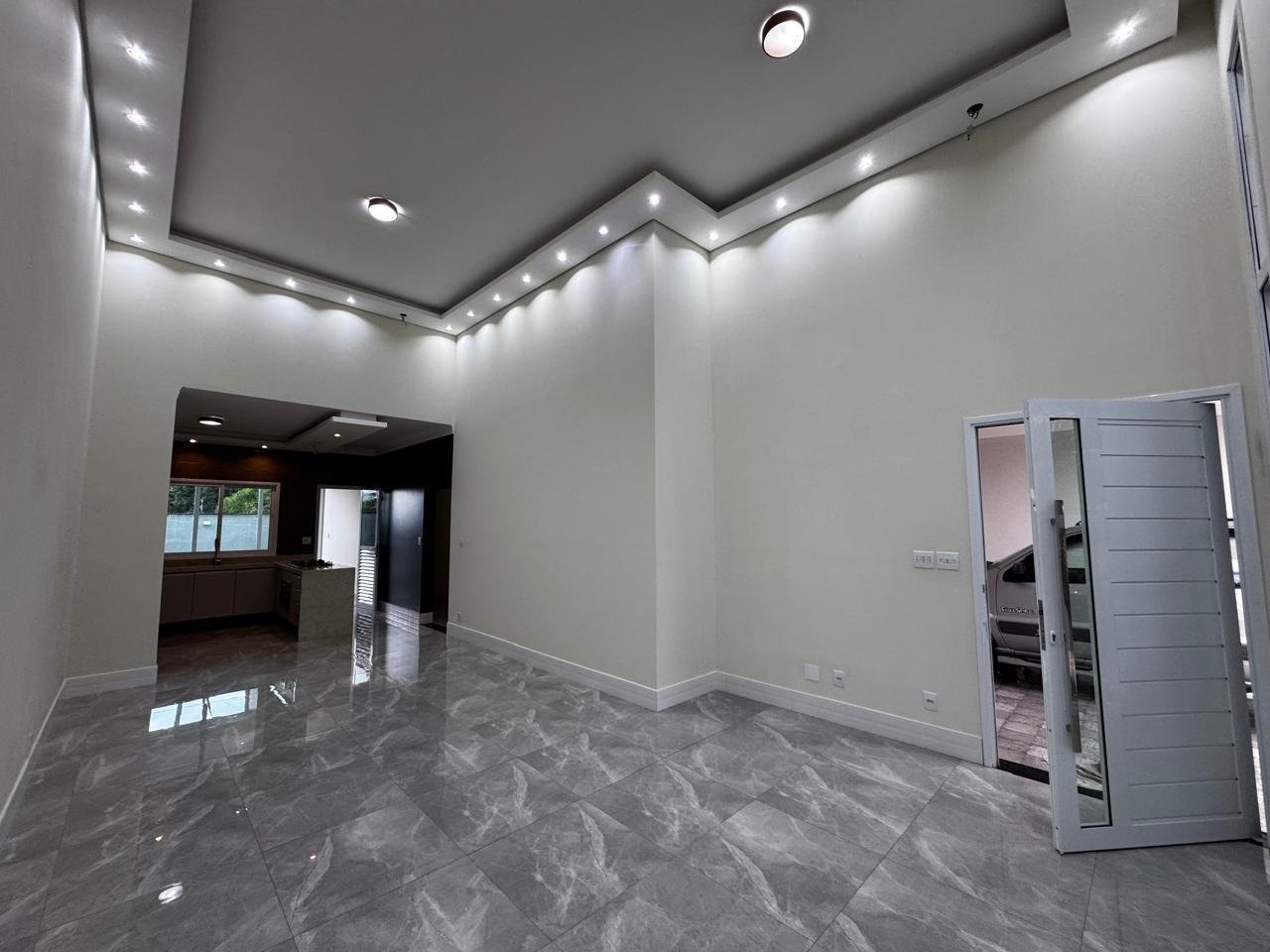 A sala de estar é integrada à sala de jantar, criando um ambiente amplo e acolhedor.